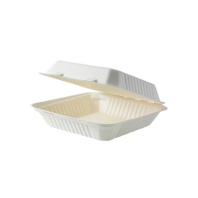 Clamshell (Sugarcane) 8“ WHITE - 205x205x40/65mm - [0220530] - BIOSERV - 200/CTN