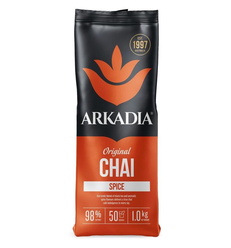 Experience true café indulgence with Arkadia Chai Tea Spice. Featuring a black tea base and a secret blend of exotic spices for an aromatic, indulgent beverage. Arkadia's signature brew follows traditional Indian chai tea recipes, savoured for over 5000 years. For ultimate indulgence serve as a Chai Latté or on ice as and Iced Chai Latté._x000D_ _x000D_ Inspired by purity - this product is free of preservatives, artificial colours and artificial sweeteners – and is 98% fat free*._x000D_ Tea naturally contains antioxidants which may help the body support its immune system